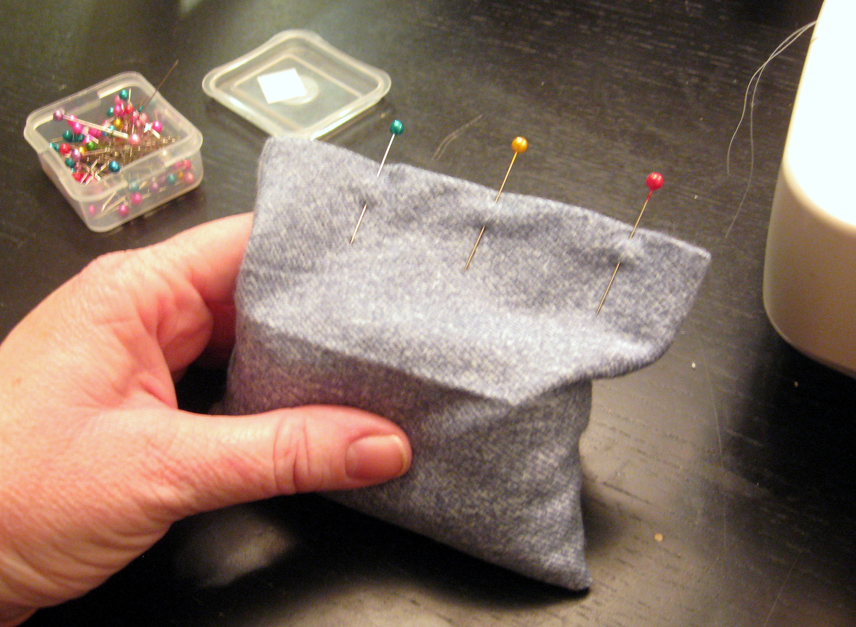 Again, you could stop here if you like the shape, but I thought it was too wide at the top, so I measured down the top inside seams a few inches on both sides and sewed a triangle to taper the top sides in a little, like this: