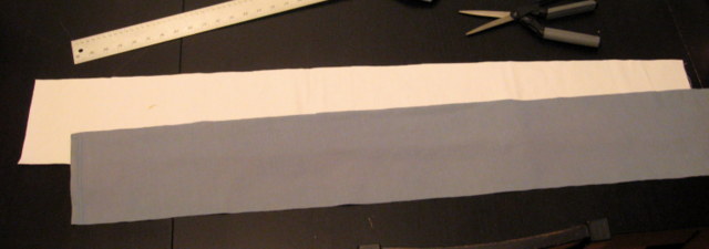 Lay them out on top of each other, and fold them in half lengthwise, with the right side of the outside fabric on the inside of the fold. Press it all flat, then sew up the long edge. Turn it all right side out, smooth it all flat and press it again.