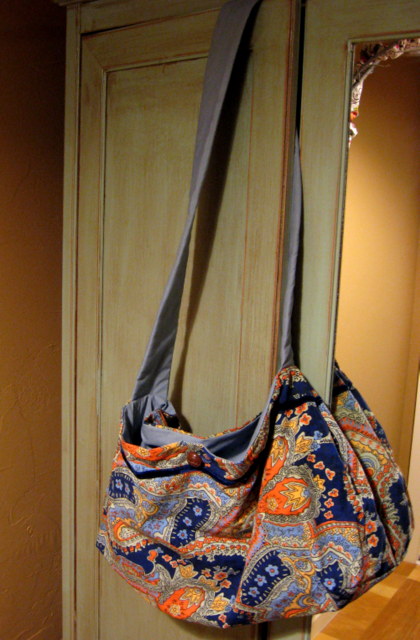 And my library bag – two straps instead of one – and made from a heavy duty upholstery fabric that I picked up for pennies on clearance.