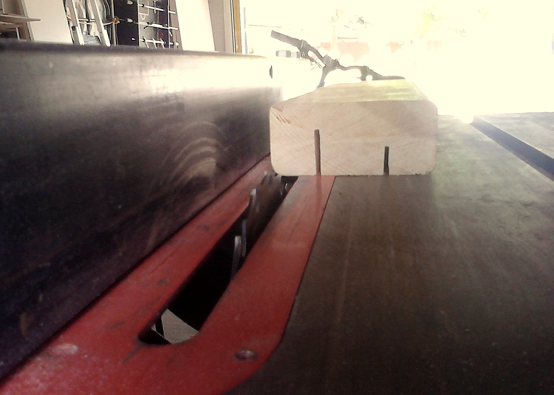 I started by grabbing a piece of a 2 X 4 from my garage. This one is about 14 inches or so, but you could make it longer or shorter. I set the blade on my table saw to cut about one inch deep and about one inch in from the side of the wood and ran the 2 X 4 all the way across. Then, I changed the depth to about half an inch, flipped the board around and did the same thing on the other side, creating two different troughs along the top of the board.