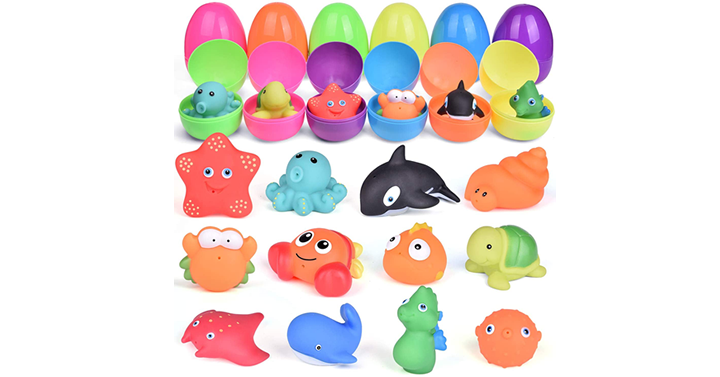 Get on over to Amazon and get a great deal on the 12 Prefilled Easter Eggs with Bath Toys for Toddlers! Priced at just $19.95!