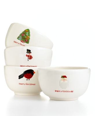 Oneida Dinnerware, Set of 4 Assorted Christmas Cut-outs Bowls