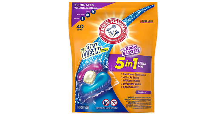 Get on over to Amazon and get Arm & Hammer Plus OxiClean With Odor Blasters 5-IN-1 Power Paks Laundry Detergent – 42 ct – Pack of 4 – Just $19.79!