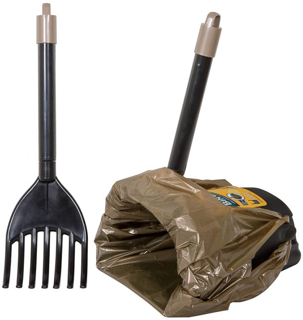 - CLEAN PICK UPS, LESS ODOR: Dog poop scoop includes hooks on both sides of bin to secure Arm & Hammer odor control bags for freshly scented pick ups; two Arm & Hammer Swivel Bin Waste Bags included