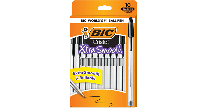 Get on over to WalMart and get the BIC Cristal Xtra Smooth Stic Ball Pen – Black, Blue or Red – 10 Pack for just $1.27!