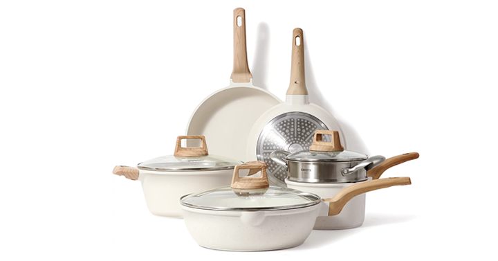 Head on over to Walmart and grab the Carote Nonstick 8 Pcs Induction Kitchen Cookware Sets in White Granite for just $64.98!