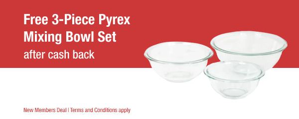 I love freebies like this! Don’t miss this really great freebie! If you’re not a TopCashback member yet, you’ll definitely want to take advantage of this offer! Through April 28th, new TopCashback members can get a FREE Pyrex 3-Piece Mixing Bowl Set!