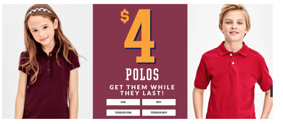LAST DAY!!! If your kiddos wear uniforms then you need to head over to The Children’s Place where you can snag $4.00 Polo’s! Plus, the rest of the site is up to 60% off! Basic Denim and Uniform Pants are just $7.80 or less, graphic tee’s are as low as $2.99, and more!