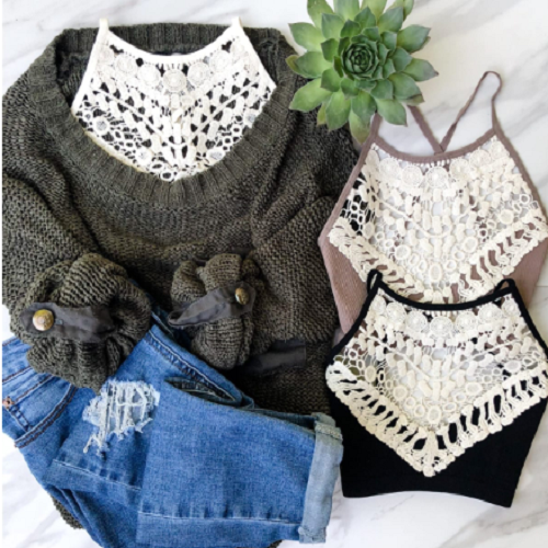 These are gorgeous! LOVE THEM! Right now on Jane, you can grab one of these Crochet Lace Bralettes for Only $11.99! (Reg. $25). The crochet lace bralette is stunning, transform your basic tops and sweaters by just adding a little lace.