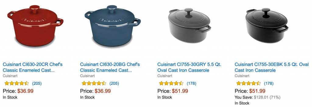 - Cuisinart Chef’s Classic Enameled Cast Iron 3-Quart Round Covered Casserole in blue or red $36.99 (regularly $120.00)