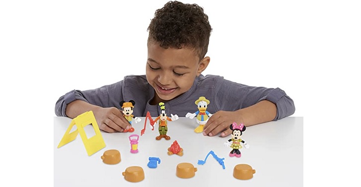 Amazon has the Disney Junior Mickey Mouse Funhouse 14 Piece Camping Figure Set for only $9.60! (Reg. $17) This 14-piece figure set includes a Mickey Mouse figure, a Minnie Mouse figure, a Donald Duck figure, a Goofy figure, a tent, a backpack, two fishing rods, a lantern, a campfire, and four tree stumps.