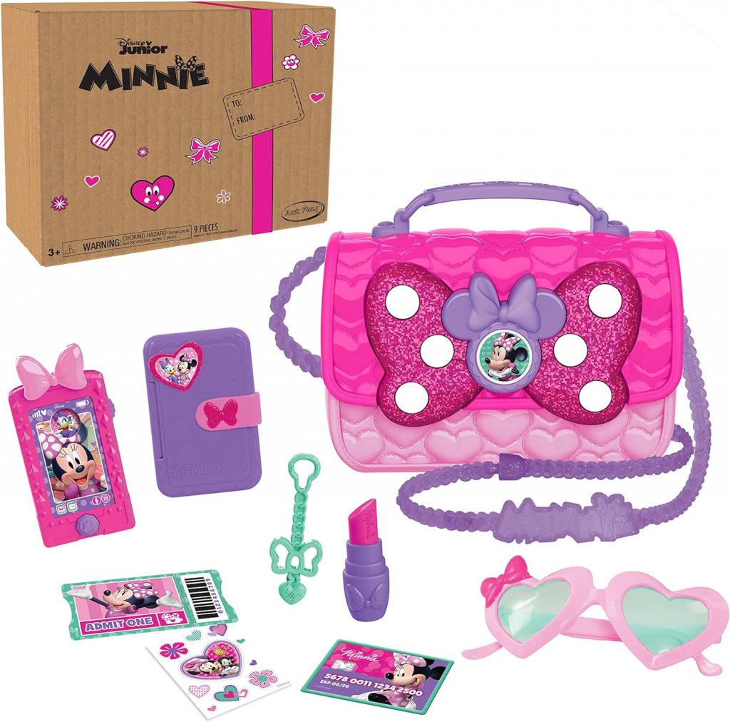 - A Stylish Good Time: Disney Junior’s Minnie Mouse Bowfabulous Bag Set is great for imaginative roleplay.