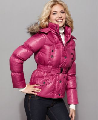 Dollhouse Jacket, Hooded Faux Fur Long Sleeve Belted Puffer Coat