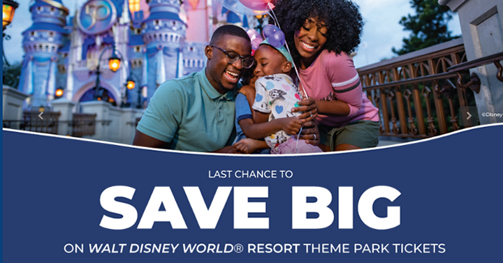 ENDS TODAY! Save BIG on Walt Disney World tickets with Get Away Today! Ticket prices at Walt Disney World Resort recently went up, but you can still get the old prices. From now until January 3, 2023, you can save up to $100+ off the gate price per ticket when you book your tickets. Tickets must be purchased before 9pm MT on the 3rd.