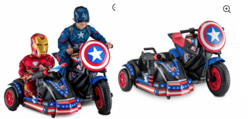 Hurry over to Walmart and snag this Kid Trax 12-Volt Captain America Motorcycle Ride-On for just $99.00! (regularly $249.00) This features a sidecar for your sidekick to ride along, but it can also be removed for solo rides. Plus, the dart launcher comes with darts to shoot down villains. This will qualify for free shipping for everyone!
