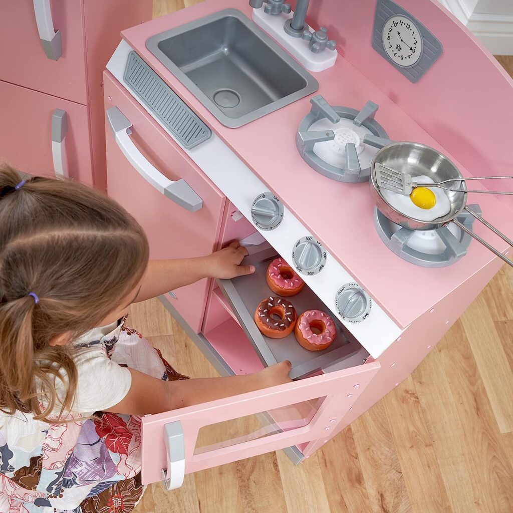 Check out this super cute playset! Head over to Amazon where you can get this KidKraft Retro Wooden Play Kitchen and Refrigerator Set for only $77.69! (Reg. $199.99) Additional details include: