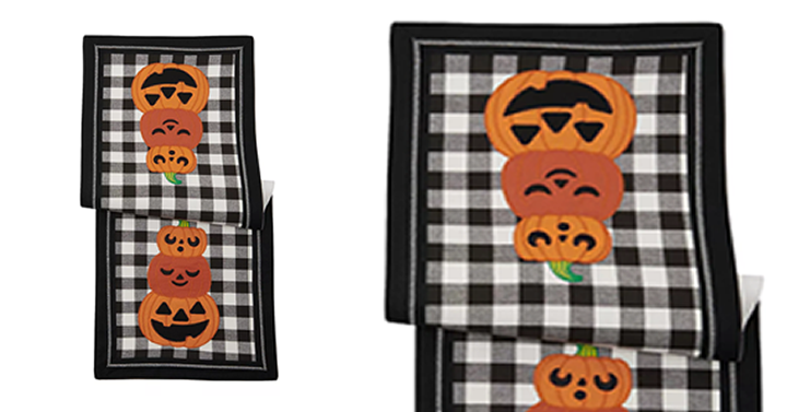 - Add the Buffalo Check Pumpkin 36″ Table Runner to your cart for $12.49. (Reg $24.99)