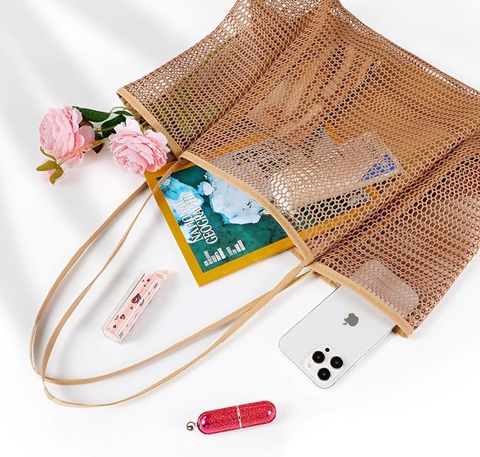 - HIGH QUALITY – This beach tote bag is made of tear-resistant nylon, polyester materials with a diamond mesh design that is strong enough to bear 25+ lbs. Ensures longer lifespan and durable use. You don’t have to worry about safety.