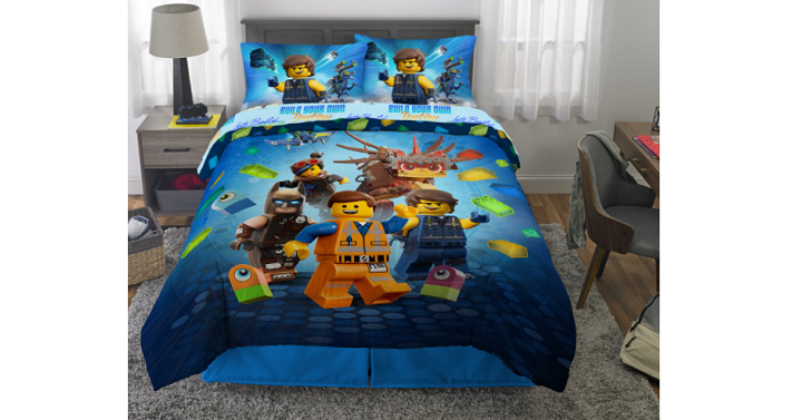Sweet! Calling all LEGO fans! Walmart has this super cute The LEGO Movie Bed-in-a-Bag, Kids Bedding Bundle Set, 5-Piece on sale for only $44.97 Shipped! (Reg. $73) Full-sized bedding set includes comforter, fitted sheet, flat sheet, and pillowcases.