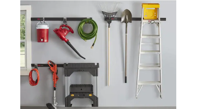 Today only, November 24th, Hurry over to Lowe’s and get the Rubbermaid FastTrack Garage 5-Piece Powder Coated Steel Storage Rail System for only $18.41! (Reg. $33) Kit includes (1) 32-in FastTrack Garage Rail, (1) Multi-Purpose Hook, (1) 1-Handle Hook and (2) Scoop Hooks. FastTrack Rails install easily and hold up to 1,750 pounds when mounted using standard stud spacing.