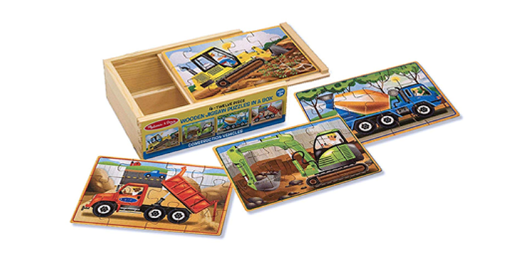 Check out the deal Amazon has on the Melissa & Doug Construction Vehicles 4-in-1 Wooden Jigsaw Puzzles priced today at just $8.49!