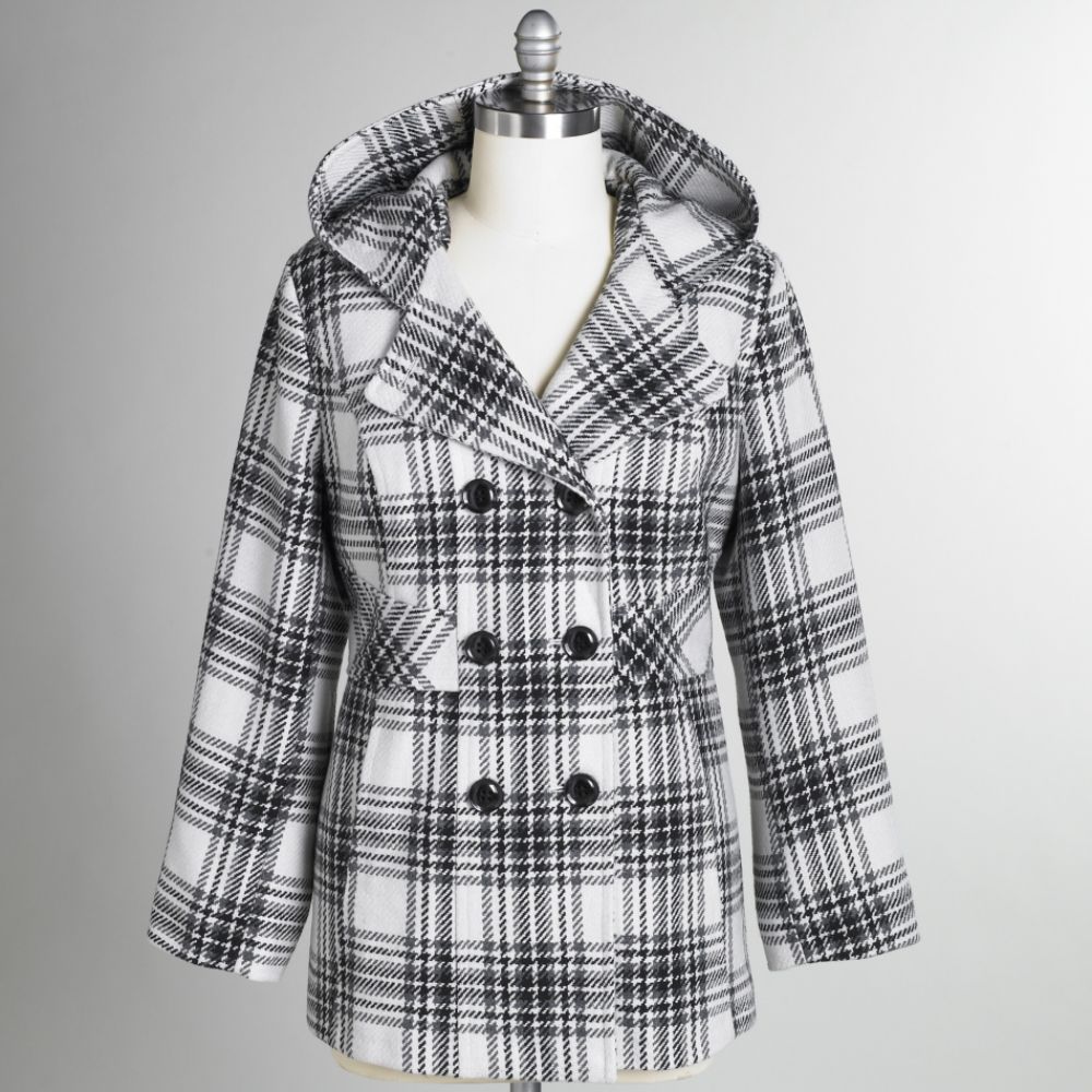 Braetan Women’s Plus Plaid Hooded Peacoat