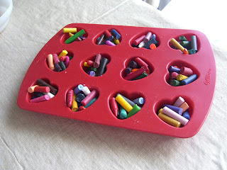 I know there are many places online that show you how to make heart shaped crayons. I have been doing this with my kids since 2008. They love it and so I thought I would share with you in case someone hadn’t heard about it.