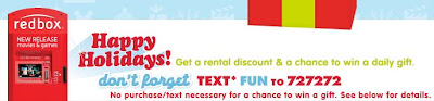 Today starts the 12 days of deals & prizes at Redbox. Don’t forget to text FUN to 727272 to get a rental discount and chance to win a daily gift. Click here for more information.