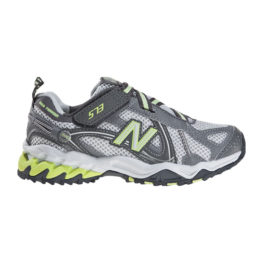 New Balance Girls’ 573 Trail Running Shoe – Gray/White/Lime