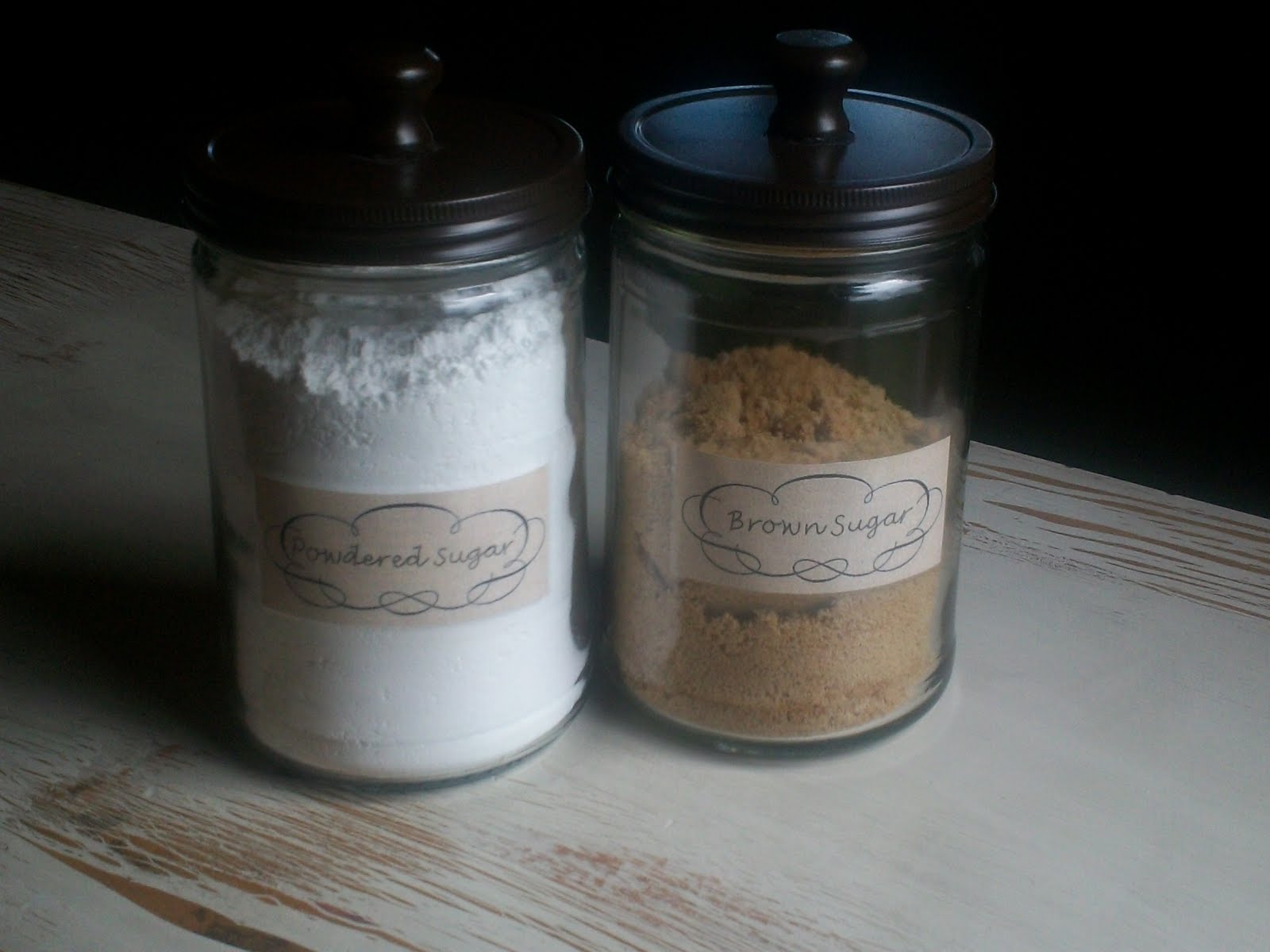 After a little spray paint and some old dresser drawer knobs, I’m pretty happy to replace my 30 year old Tupperware canisters with these.