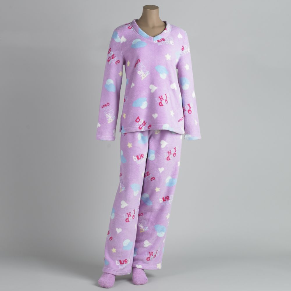 Pink K Women’s Embossed Micro Fleece 2 Piece Pajama Sets