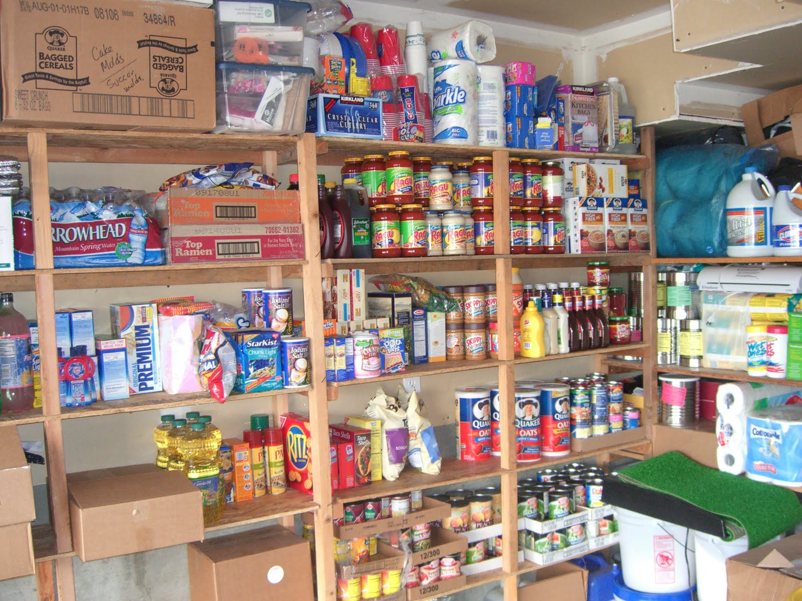 (Those who know me know that we always have a lot of cold cereal. That is not pictured, as the cereal is kept on a small shelf high up by the ceiling, past the top right corner of the photo.)