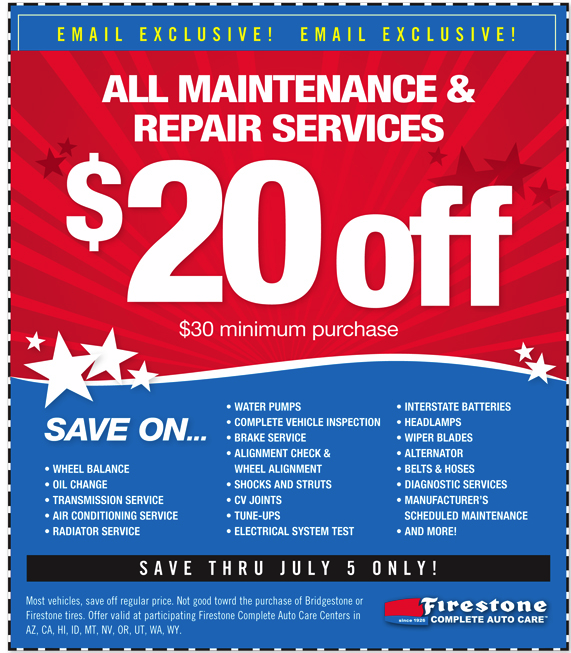 $20 off all Maintenance & Repair Services. $30 minimum purchase.