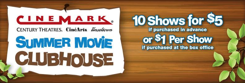 Select Cinemark Movie theaters around the country are participating in the Summer Movie Clubhouse.