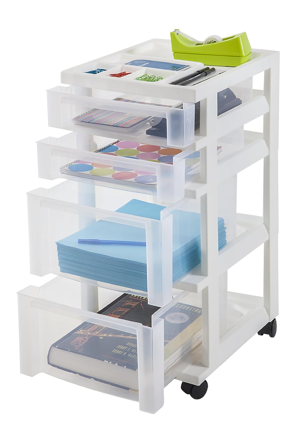 Get on over to Amazon and get the 4-Drawer Storage Cart with Organizer Top for just $19.19!
