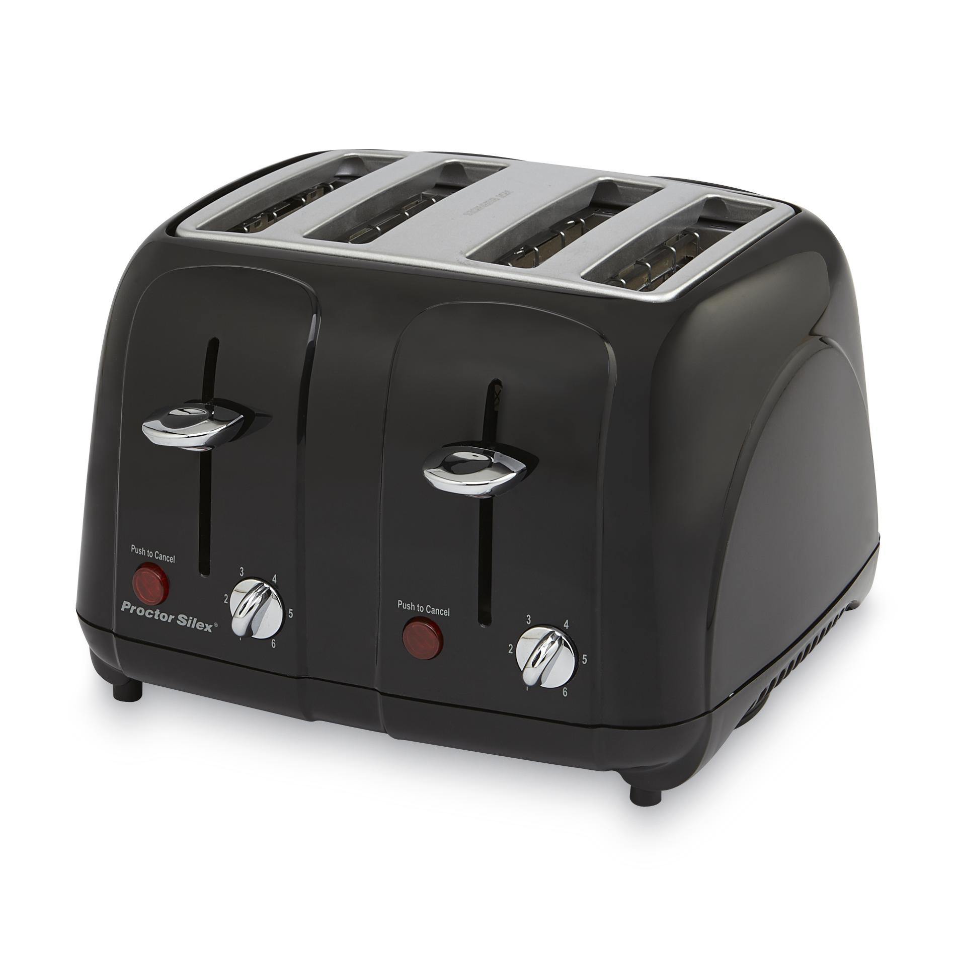 Make perfectly crisp toast, bagels and more with the Proctor Silex cool touch toaster. Offering a 4-slice capacity, this genius small appliance features wide slots, a removable crumb tray and an exterior that stays cool when in use.