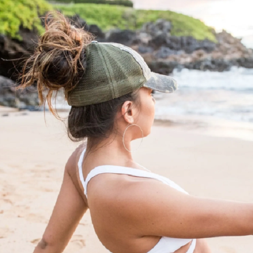 There is no need to make your messy bun/ponytail after putting on your hat. Now put your hat on after with our special design closure. Giving you a perfect fit & perfect hair every time you wear! Take a look at how easy our hats function with our step by step instructional picture.
