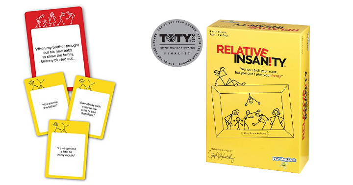 Take this to your family Christmas party this month! Amazon has the Relative Insanity Party Game about Crazy Relatives for only $7.99! Featured on and played by the Tonight show starring Jimmy Fallon, Rachael Ray show and more! It’s a hilarious game about crazy family members and even crazier situations-perfect for game nights with friends and family.