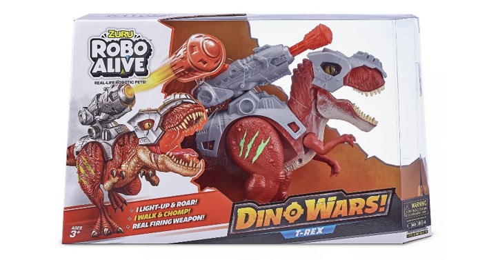 Target has the Robo Alive Dino Wars T-Rex Robotic Dinosaur Toy by ZURU for only $5.99! (Reg. $10) This would be a super fun Fun Holiday Gift. This T-Rex stomps and chomps like a real dinosaur! With realistic looking eyes, a glow in the dark scar, a Jurassic roar, and a light up mouth, this dinosaur really comes alive! Now with defensive armor, this T-Rex outruns all other predators. Armor up & get ready for the Dino Wars!