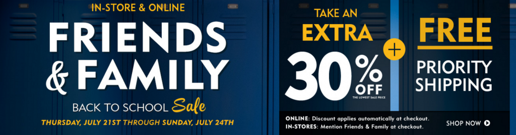 Everyone needs new kicks for school. Shoe Carnival has got you covered! During their Friends & Family Sale you can take an extra 30% off and get FREE priority shipping through July 24th.