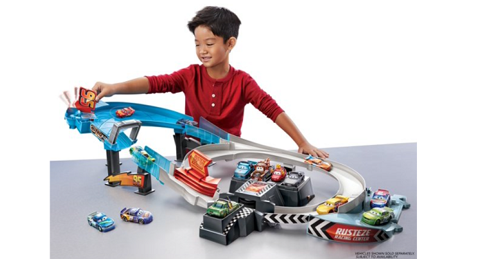 Target has the Disney Pixar Cars Rusteze Double Circuit Speedway Playset for only $25! (Reg. $50) Tear up the field on the ultimate test track! Disney and Pixar Cars fans get thrilling action and multiple ways to play with the Rusteze Double Circuit Speedway! Race, drift and crash–it’s a racing set designed to push cars to the limit with high speeds and extreme stunting fun! Ramp up the velocity during practice laps on the lower track, and then flip the diverter, and Lightning McQueen leaps to the upper track for incredible 360 drifting action!