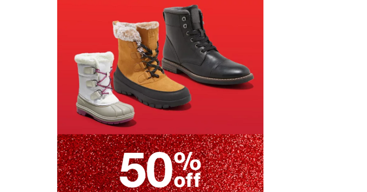 Target has a great promotion where you can save 50% on Boots for the Whole Family! No coupon code required, you’ll see the prices marked in red. There are a lot of brands and styles to choose from. If you need some ski boots or snow boots, check these out too. Plus, use your Target Redcard to save an additional 5% off and score free shipping.