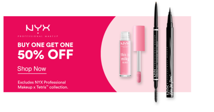 Now through April 17th, ULTA has an awesome promotion where you can Get NYX Professional Makeup Buy 1 Get 1 50% Off! That’s a great discount on a ton of their hot makeup products. Plus, choose in-store pickup to save on shipping.