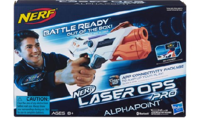 Walmart has the Nerf Laser Ops Pro Alphapoint on sale for only $6.99! (Reg. $25) The Nerf Laser Ops Pro AlphaPoint blaster fires a single-shot IR burst with each pull of the trigger and registers hits with lights and sounds. Players aim for the multidirectional receiver dome on the top of an opponents’ blaster to score a hit. Designed with unlimited ammo, the AlphaPoint blaster has a quick-reload button to replenish the ammo supply to keep on battling.