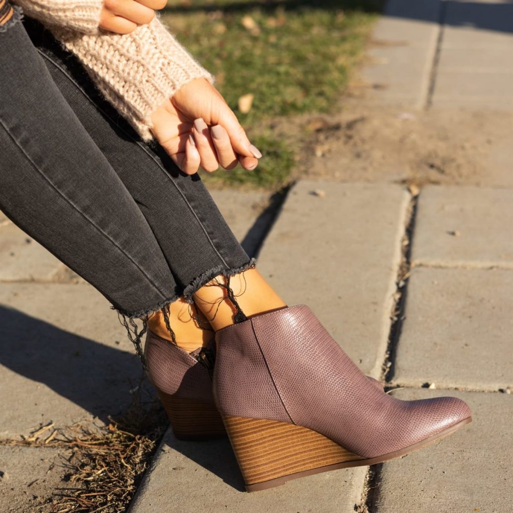 Boot season is almost upon us! Right now, Jane has these Zip-Up Wedge Booties for only $45.99! (Reg. $89.99) Sizes range from 6 to 12 with five beautiful neutral colors to choose from. This bootie adds a fresh touch to any style with its snakeskin-inspired texture. An exposed zipper enhances the low-cut ankle for a leg-lengthening look. This vegan leather design is completed with a stacked wedge heel lined with a 4 mm comfort foam footbed for a walkable lift. Grab a pair today!